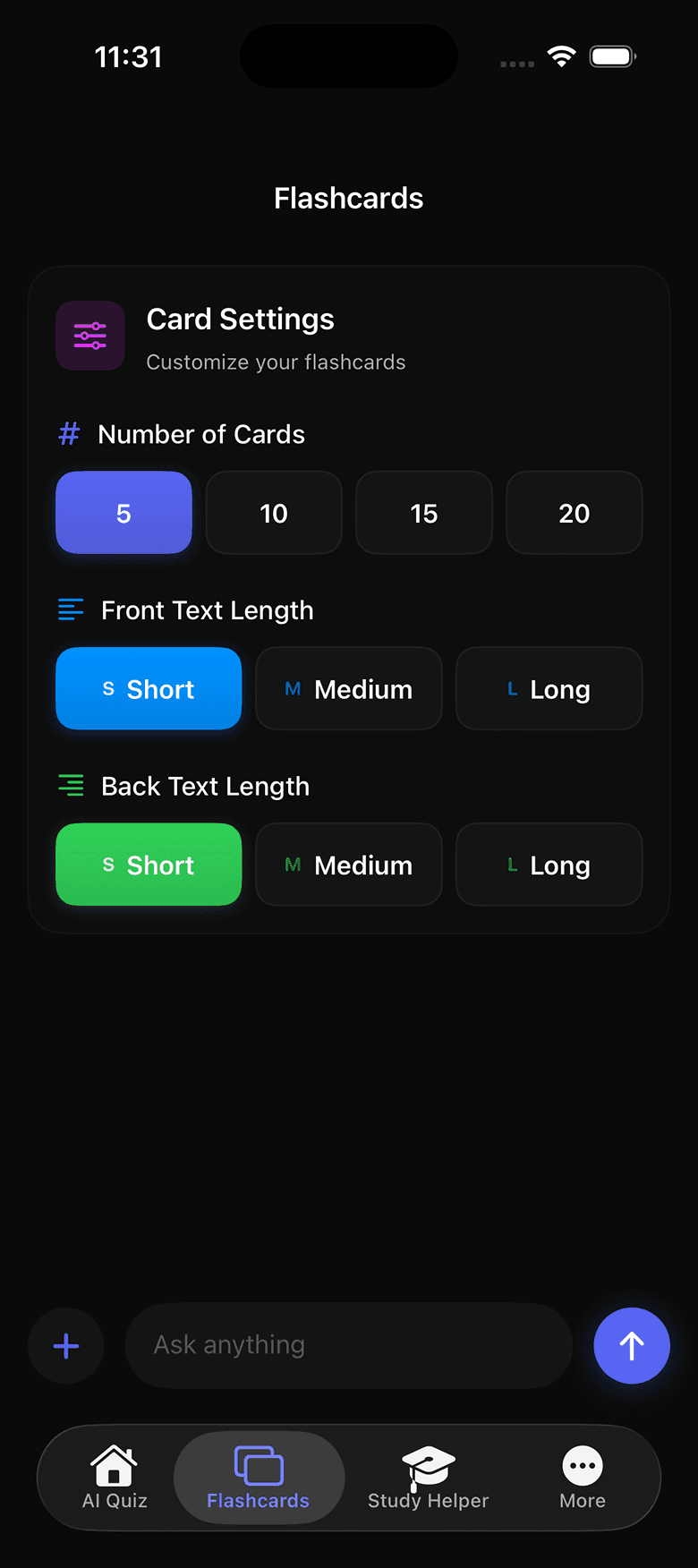 Turn any material into quizzes, flashcards, and insights—powered by AI.